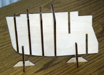Die Spanten befestige ich noch nicht, die einzelnen Teile des Kiels