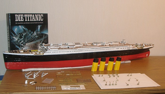 Einzelteile und 7 Platten liegen jeweils zum Fototermin vor dem Schiff,